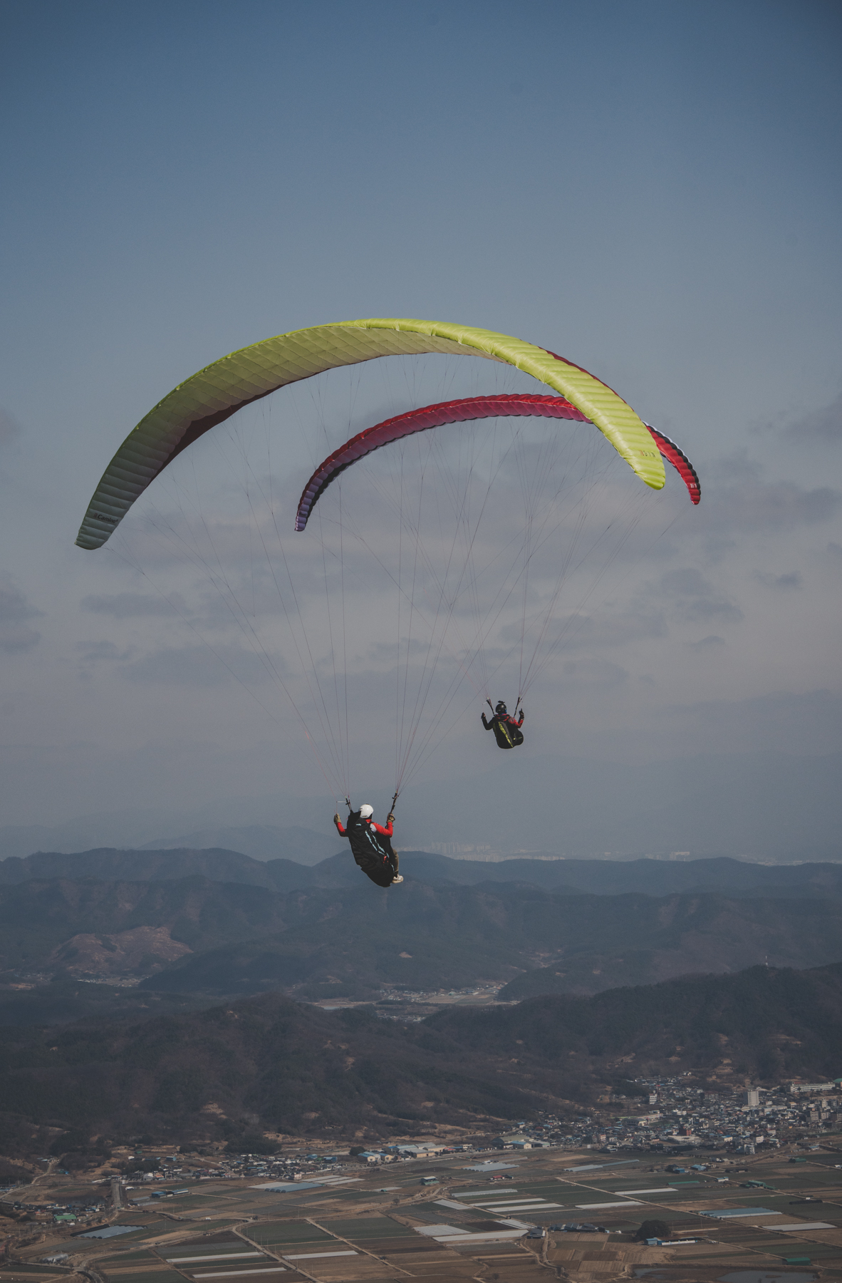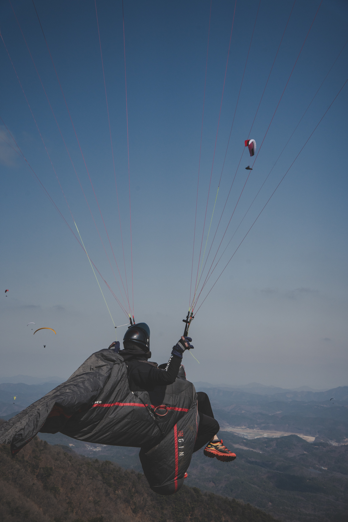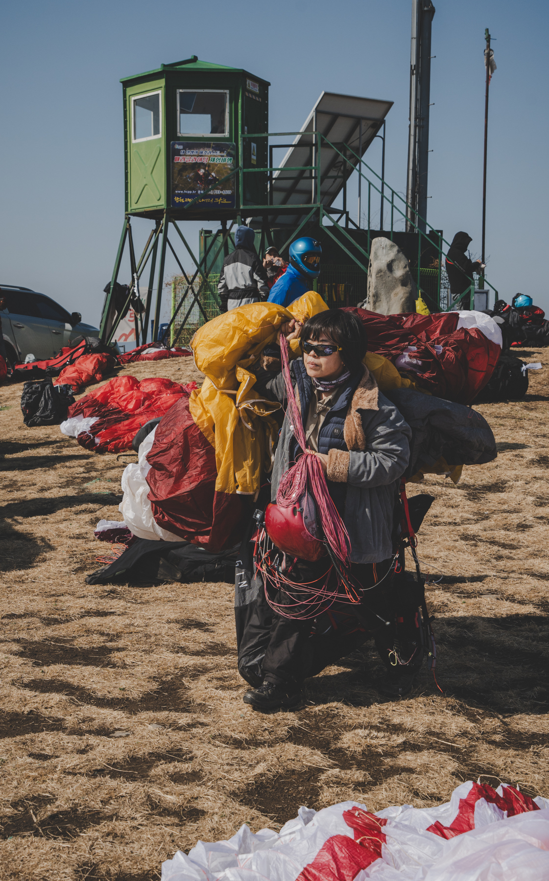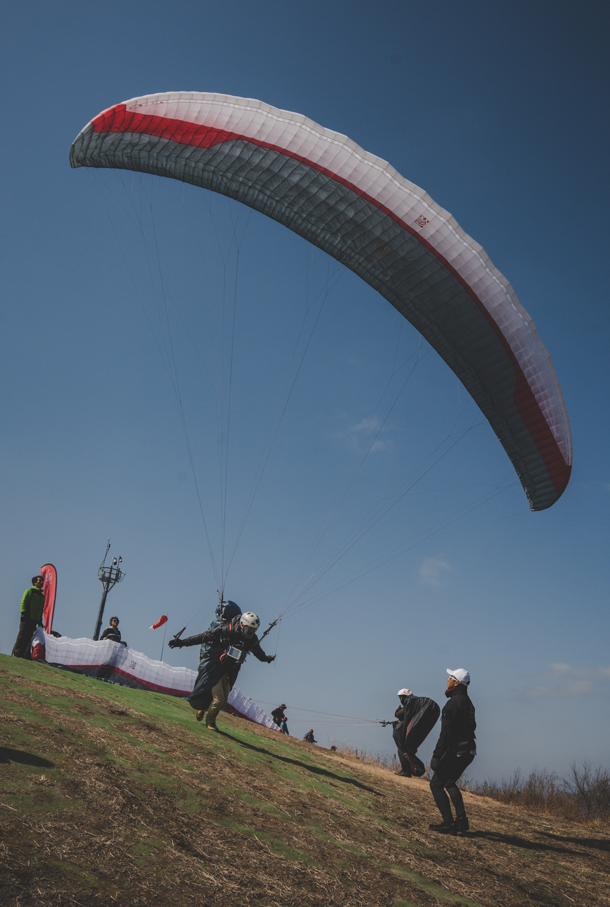 첫 선수가 나가고, 자유비행 파일럿들도 나가서 얼마나 잘 올라가는지 살펴보는 파일럿들. 잘 올라가는 조짐이 보이면 다들 우다다 출발합니다.